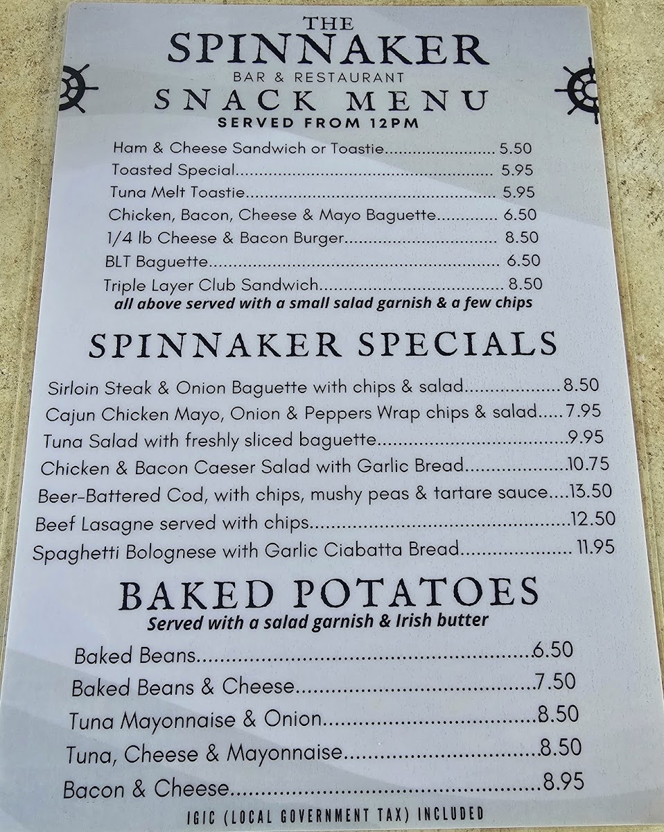 At The Spinnaker Bar & Restaurant, located in Tias, Lanzarote, the menu is a delightful fusion of traditional Irish cuisine and local flavors. Guests rave about the Sunday Roast, especially the Lamb Roast, praised for its generous portions and remarkable taste. Steak enthusiasts will enjoy the acclaimed Steak and Ale Pie, a dish that has garnered a loyal following.